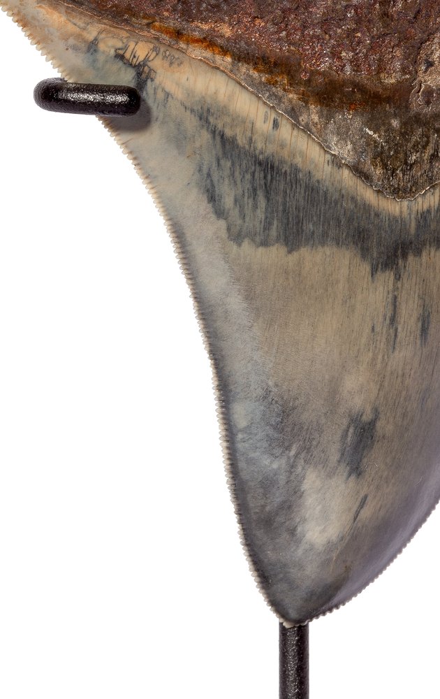 This tooth received the status of a collector's item for a reason. The condition is almost perfect. The surface of the tooth does not bear any damage. The sawtooth edge does not contain significant defects. Unique coloring, which gives the tooth an aesthetic appeal, completes the picture.