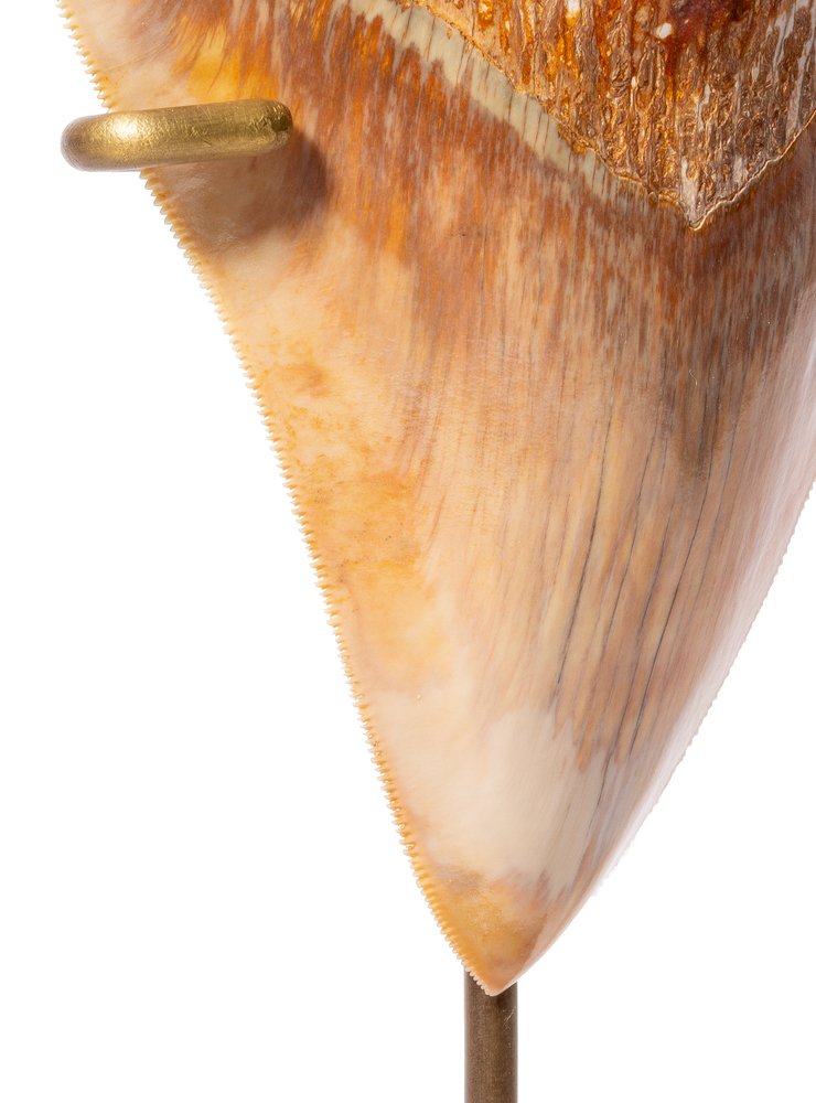 Specimens from this country are distinguished by a yellowish-beige color with areas of orange and brown. It can be noted that the tooth is well preserved, the absence of large cracks and breaks, and the ideal edge with jagged edges.