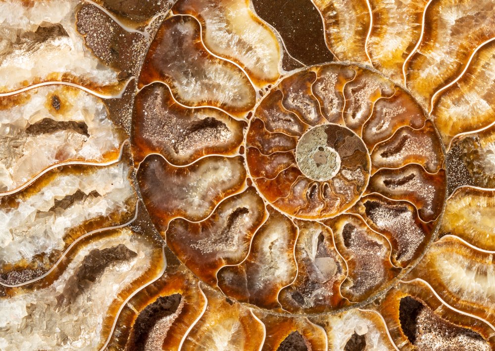 Their shells were replaced by calcite, which comes in the most incredible colors under the impact of other minerals. The base color of the Madagascar ammonites is amber-red, however leaf-like pattern of paddle lines overlays on top of it. The shells, covered with intricate ornaments, become real works of art.