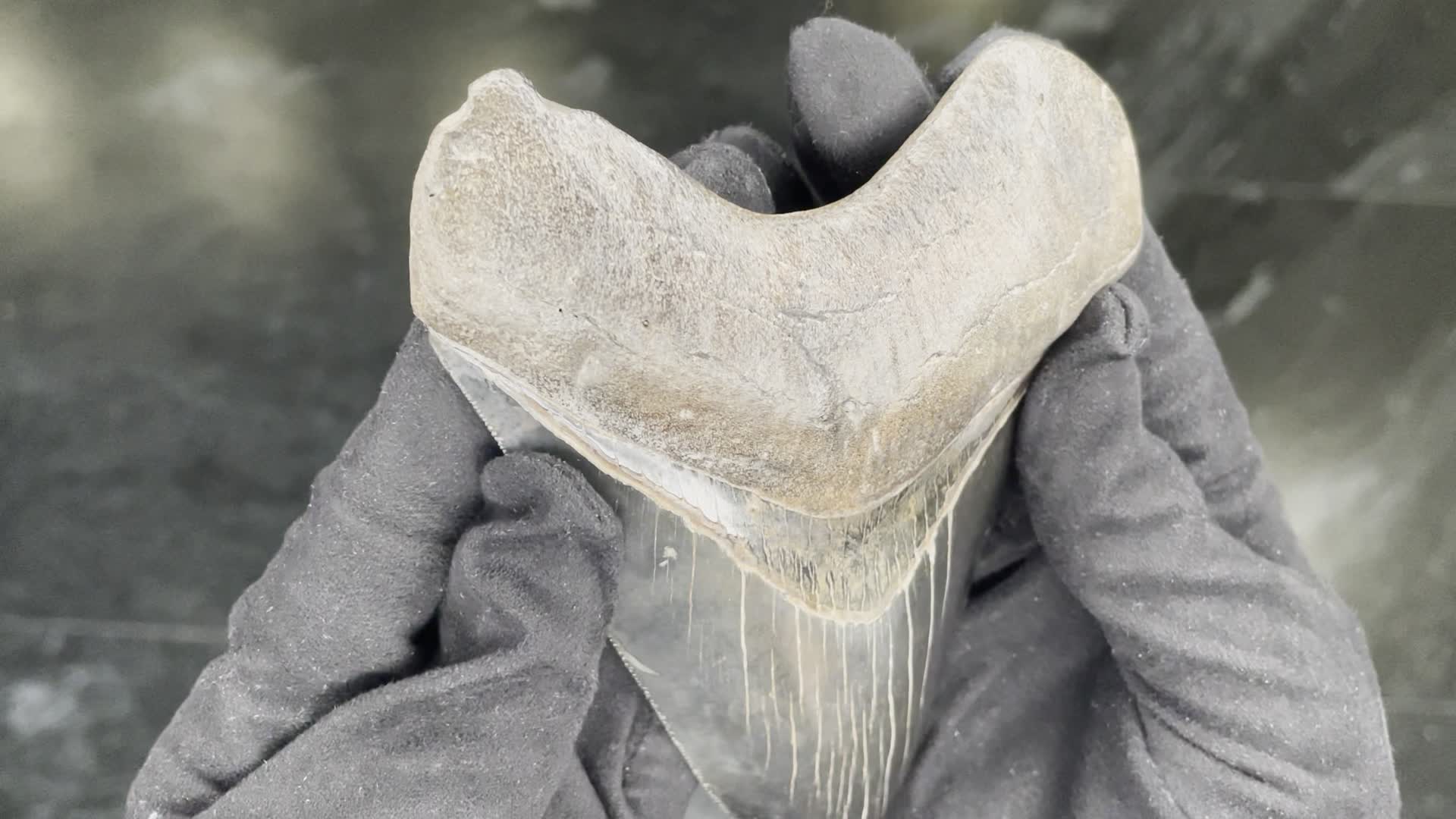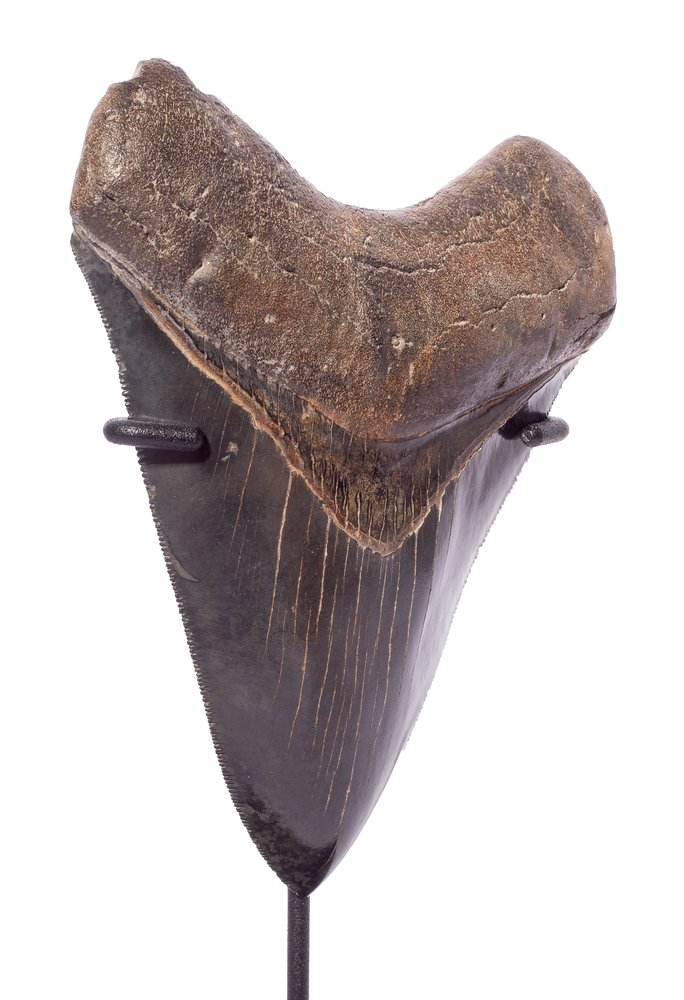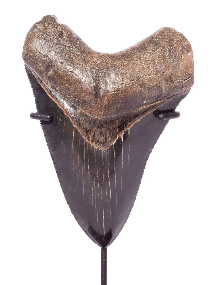This tooth received the status of a collector's item for a reason. The condition is almost perfect. The surface of the tooth does not bear any damage. The sawtooth edge does not contain significant defects. Unique coloring, which gives the tooth an aesthetic appeal, completes the picture.