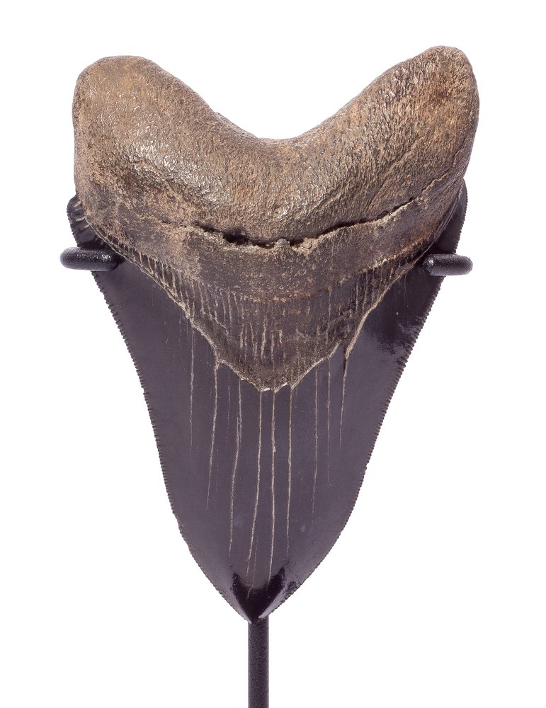 This tooth received the status of a collector's item for a reason. The condition is almost perfect. The surface of the tooth does not bear any damage. The sawtooth edge does not contain significant defects. Unique coloring, which gives the tooth an aesthetic appeal, completes the picture.