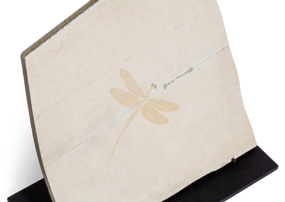 Protolindenia wittei are ancient dragonflies that hunted flying insects at the time when the footsteps of the dinosaurs were shaking the earth. Their habitat was a tropical archipelago in the seas that covered the territory of future Germany. Like their modern descendants, Protolindenia wittei lived along the shores of water bodies. Sometimes the wind carried the dragonflies toward the salty, lifeless lagoons, and they died on the wet sand. The tide would sweep their remains with a layer of calcareous silt, reliably preserving the smallest details. The fragile wings and slender long bodies have fossilized, and now you can admire the beauty of these insects after 150 million years.