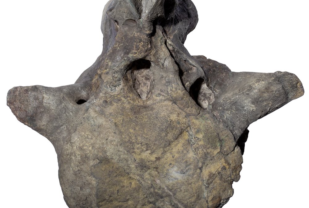 This truly enormous vertebra once belonged to the Apatosaurus, one of the most famous representatives of the long-necked herbivorous dinosaurs.