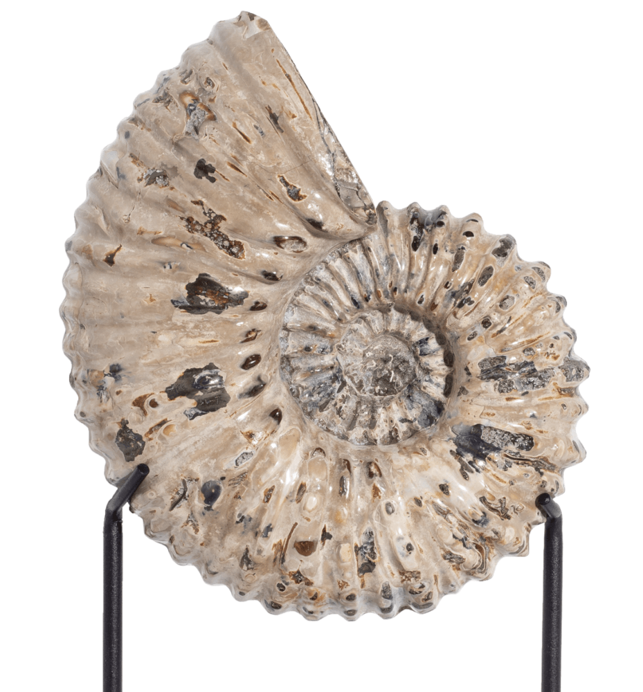 A characteristic feature of the entire genus Douvilleiceras is a relief shell. Its surface is covered with transverse ridges, which makes the fossil look like a tractor tire. In Madagascar, these mollusks are even called "tractor ammonites".