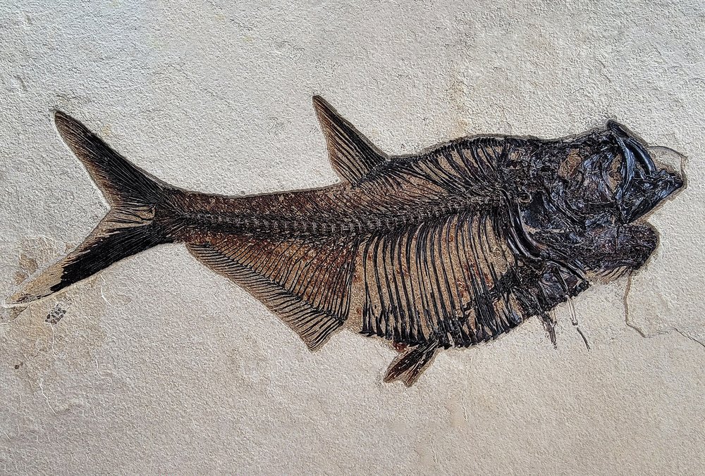 Diplomystus is a genus of herring-like fish, widely spread in fresh waters of the Eocene. The most imposing findings are known from the Green River Formation. A body expanding in the anterior part and a large head characterizes these fish. This specimen belongs to the large representative of the genus Diplomystus, which are usually smaller in size. Like all herrings, Diplomystus is a predator. Among its victims is the typical inhabitant of the Green River - a small fish Knightia. Collectors prize Diplomystus from Green River for its imposing appearance and a good level of preservation. Thanks to the thin calcareous silt that soaked the carcass of the fish after death, even the smallest bones of the fins and the contours of the body were preserved.